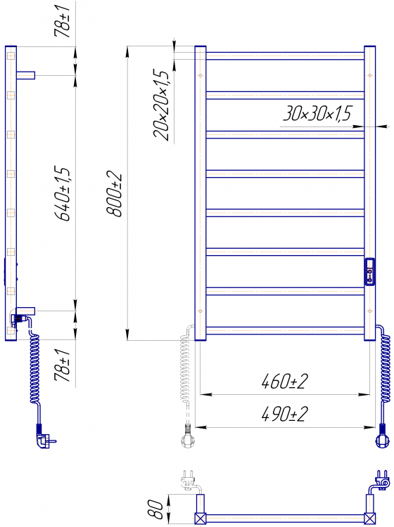Рушникосушарка електрична Mario ПРЕМІУМТокіо-I 800х50080 TR К 2.2.1702.03.P