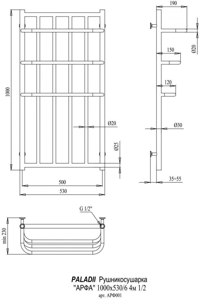 Полотенцесушитель Paladii Arfa 530x1000/5 (АРФ001)
