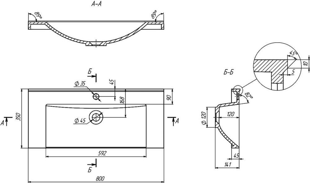 Диаметр отверстия под смеситель - 35 мм,
