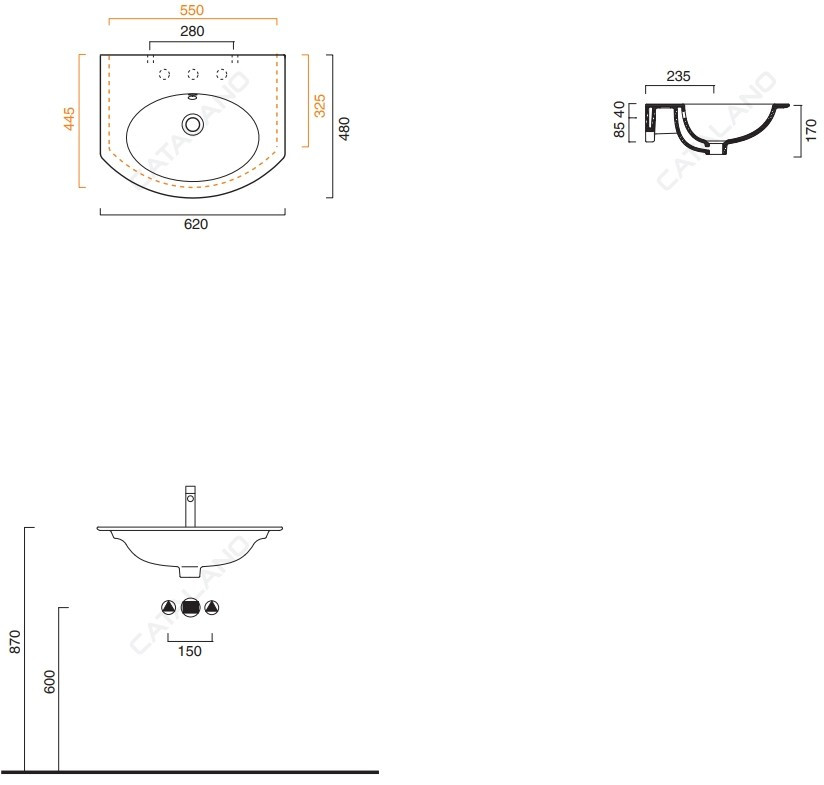 Тип монтажа - подвесной накладной на тумбу врезной в столешницу,