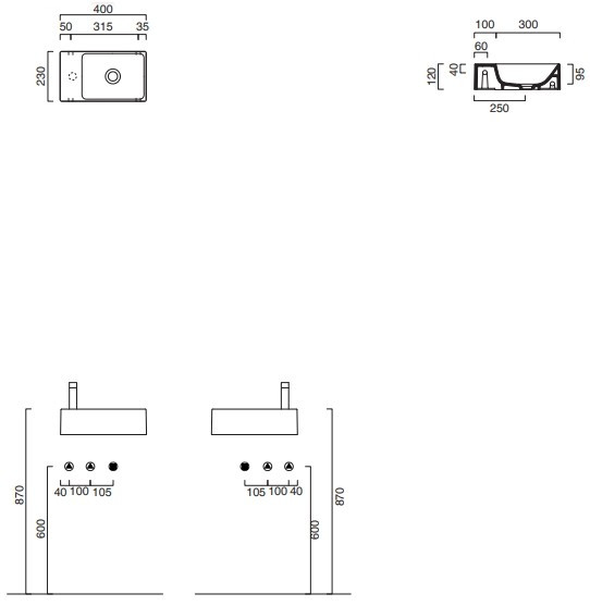 Тип монтажа - подвесной накладной на тумбу накладной на столешницу,