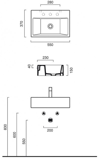 Тип монтажа - подвесной накладной на столешницу,