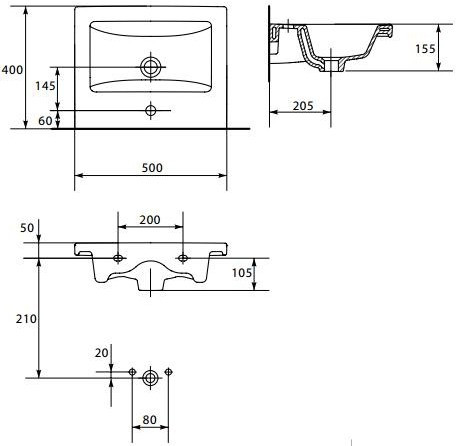 подвесной накладной на тумбу / Cersanit Lara 50 SZ-LARA-CO50/Wh , Bricklaer Vega 50 / врезной в столешницу