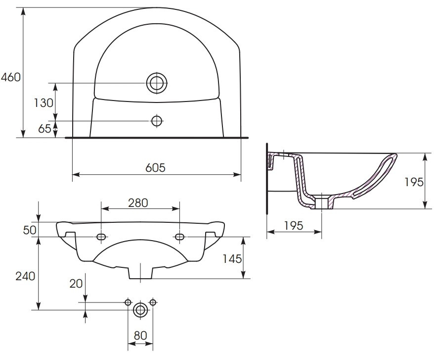 Тип монтажа - подвесной накладной на тумбу,