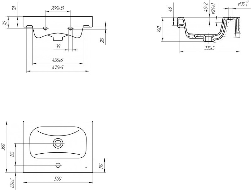 Диаметр отверстия под смеситель - 35 мм,