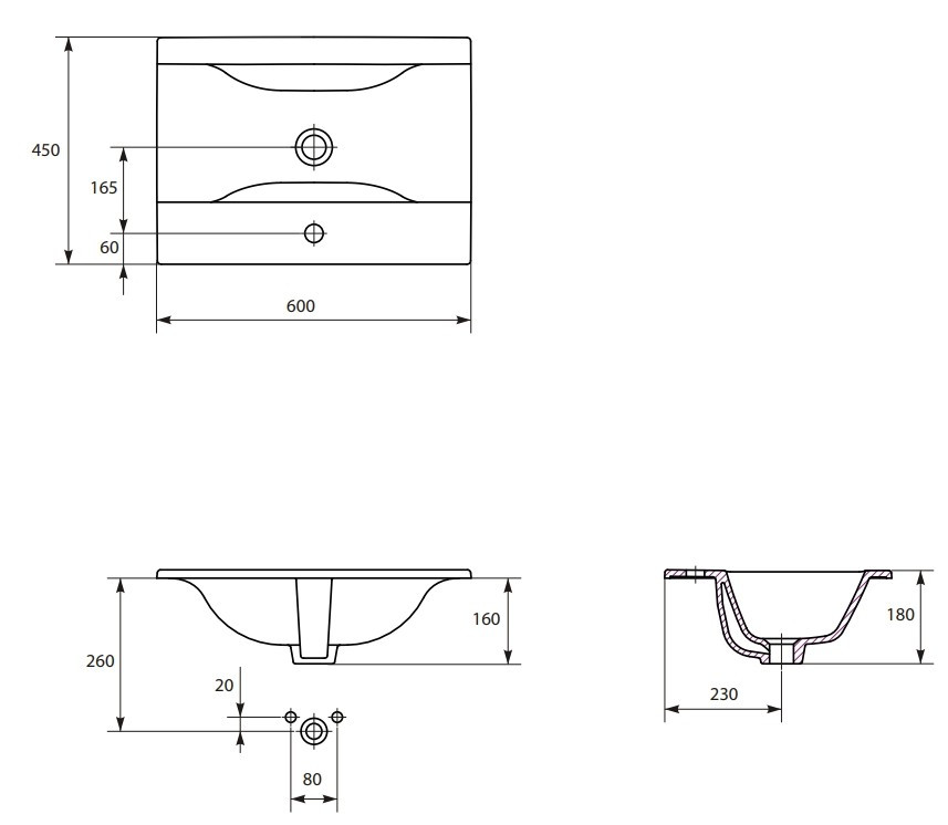 накладной на тумбу врезной в столешницу