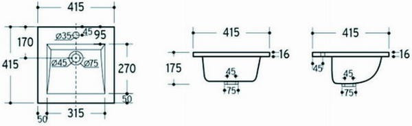 Диаметр отверстия под смеситель - 35 мм,