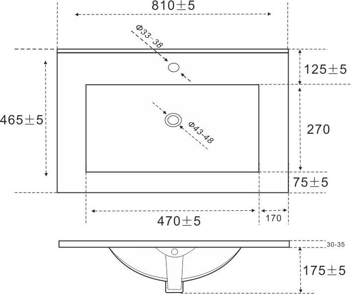 Диаметр отверстия под смеситель - 38 мм / 33 – 38 мм /,