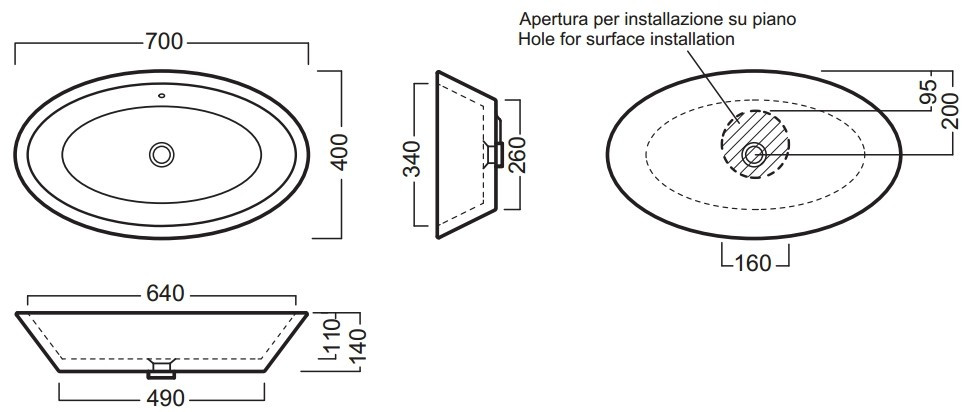 Тип монтажа - накладной на столешницу,