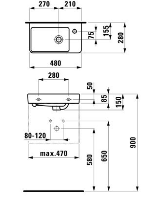 Умывальник Laufen Pro 815955 480 мм чаша справа