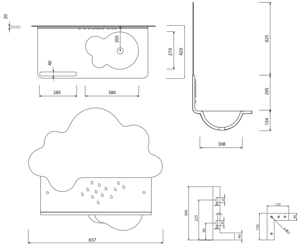 Расположение чаши - справа,
