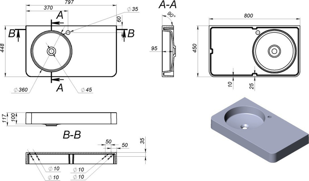 Расположение чаши - слева,