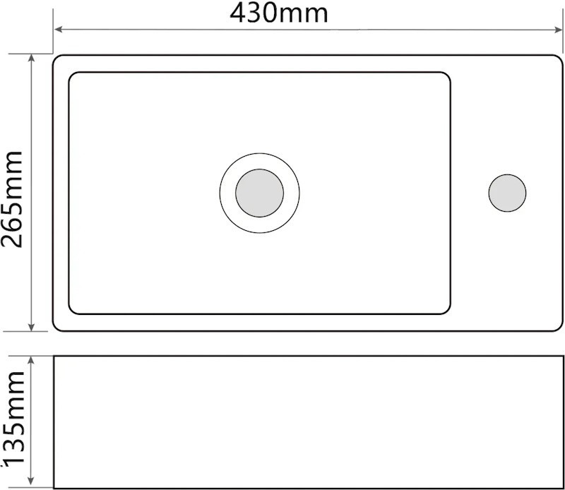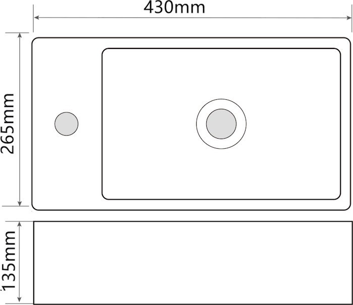 Раковина підвісна Mixxus Premium QUADRO-1201-R 430х265х135mm з отвором під змішувач та переливом (MP6504)