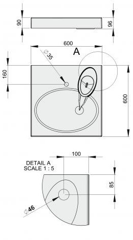 Диаметр отверстия под смеситель - 35 мм,