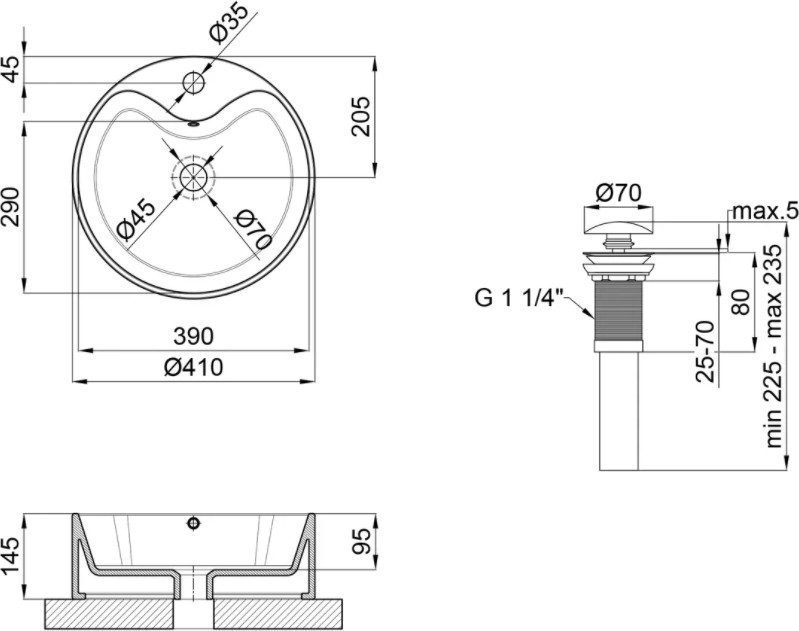 Диаметр отверстия под смеситель - 35 мм,