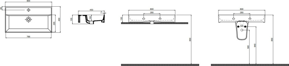 Умывальник Quarter Bath Cross Line 80 70CL23080.00.1.3.01