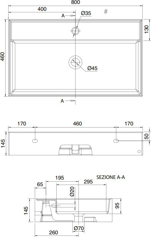 Диаметр отверстия под смеситель - 35 мм,
