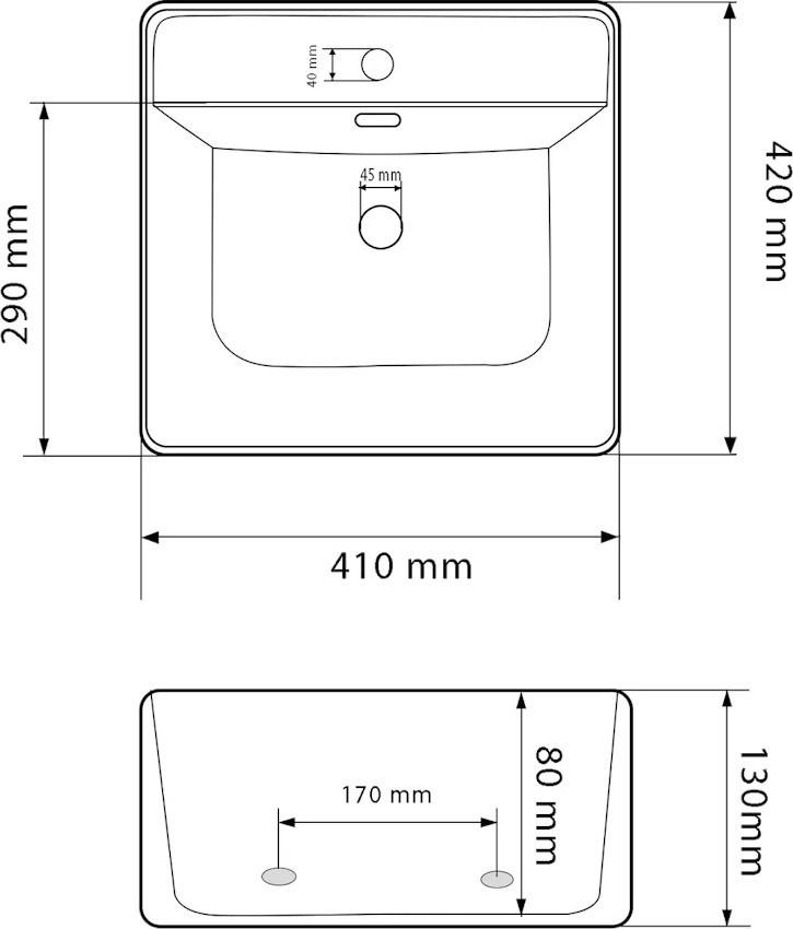 Диаметр отверстия под смеситель - 40 мм,