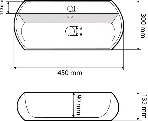 Диаметр отверстия под смеситель - 35 мм,