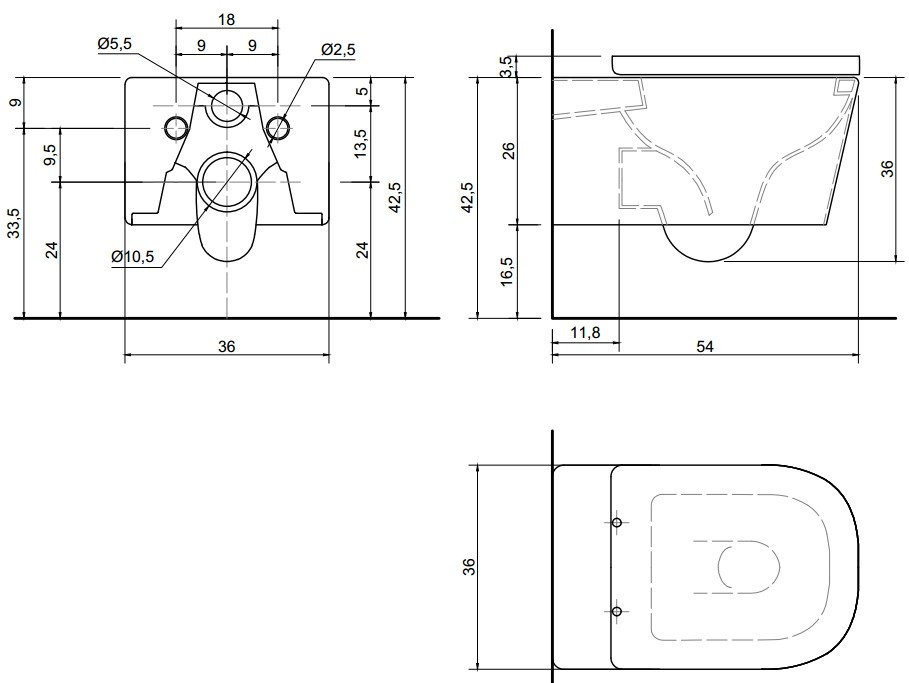 Высота чаши унитаза - 360 мм,