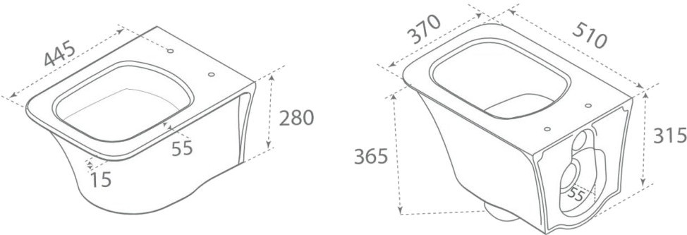 Высота чаши унитаза - 315 мм,