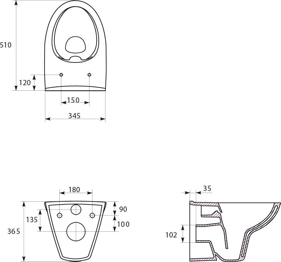 Высота чаши унитаза - 365 мм,