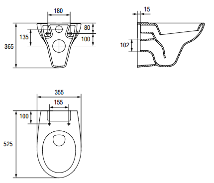 Высота чаши унитаза - 365 мм,