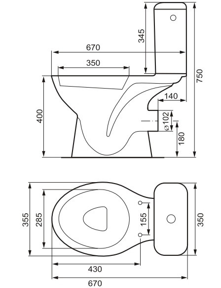 Высота чаши унитаза - 400 мм,