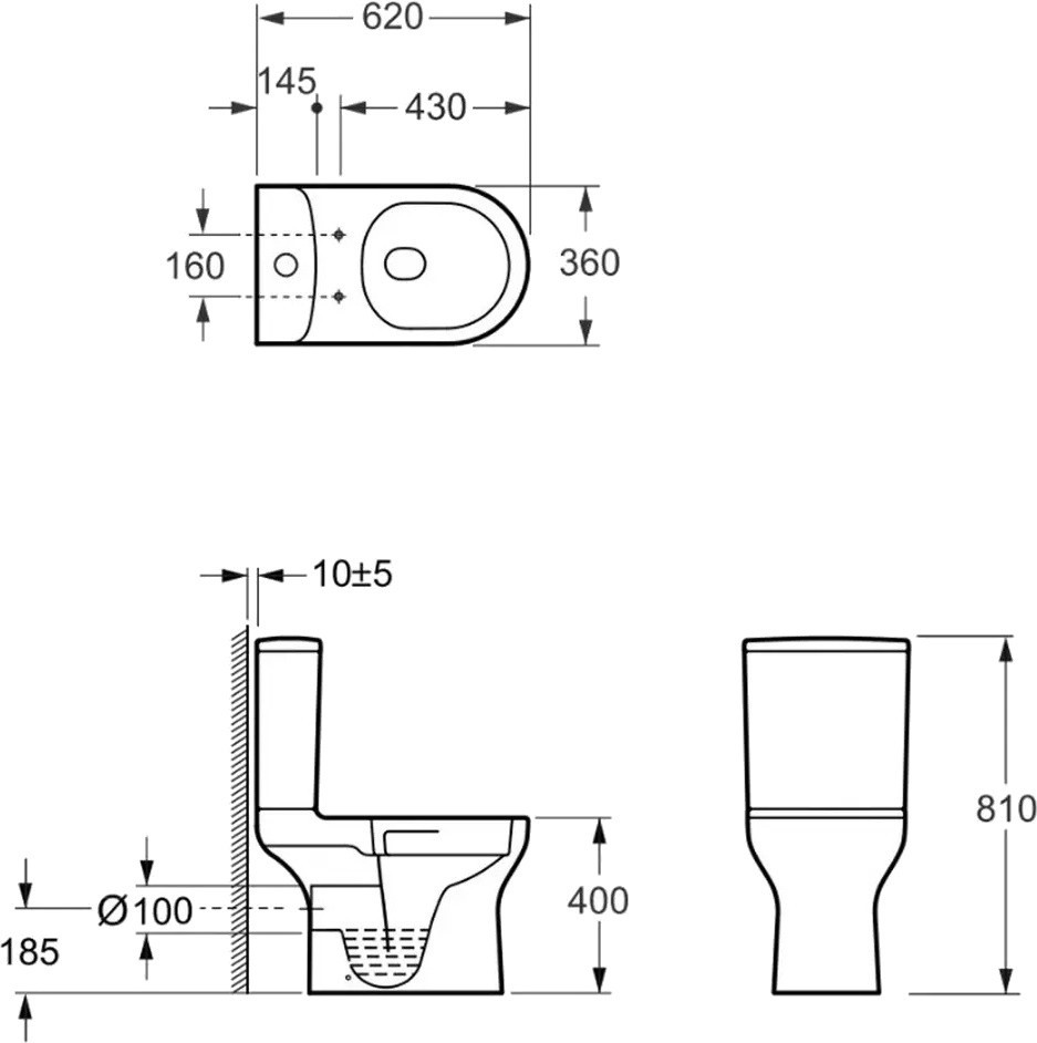Высота чаши унитаза - 400 мм,