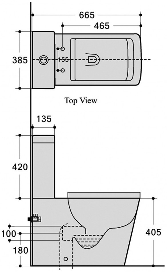 Высота чаши унитаза - 405 мм,