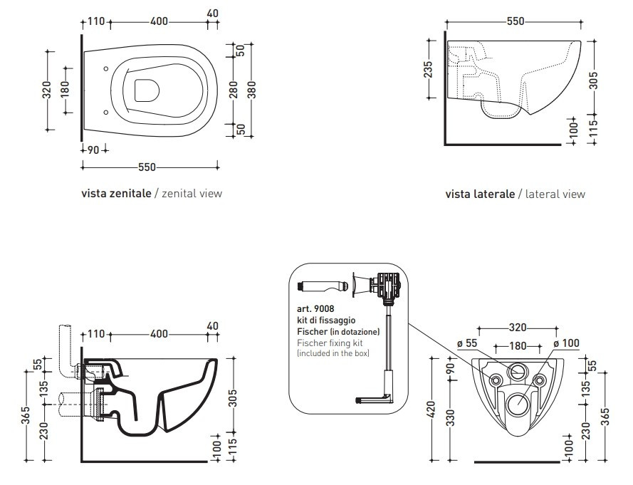 Высота чаши унитаза - 305 мм,