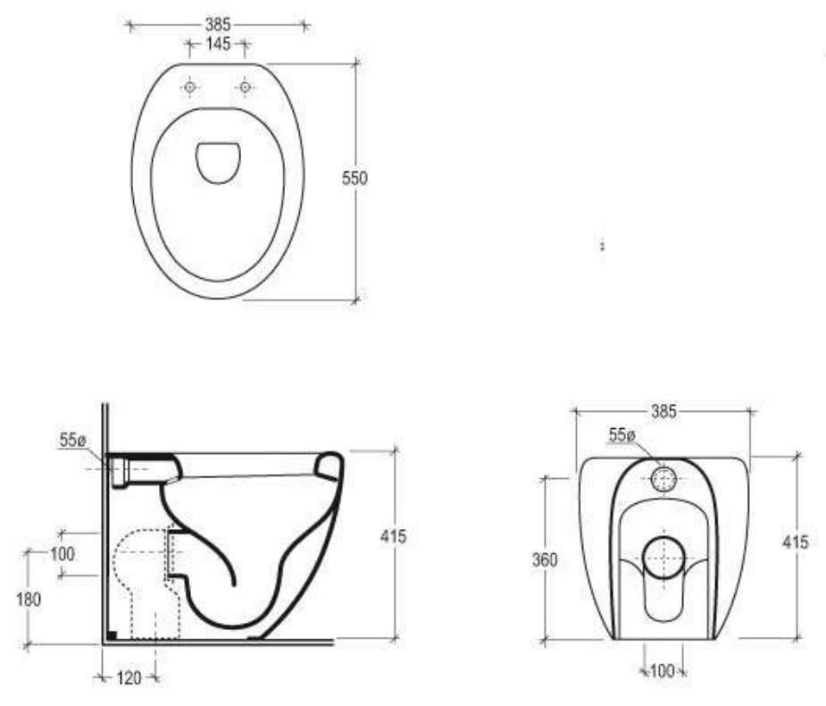 Высота чаши унитаза - 415 мм,