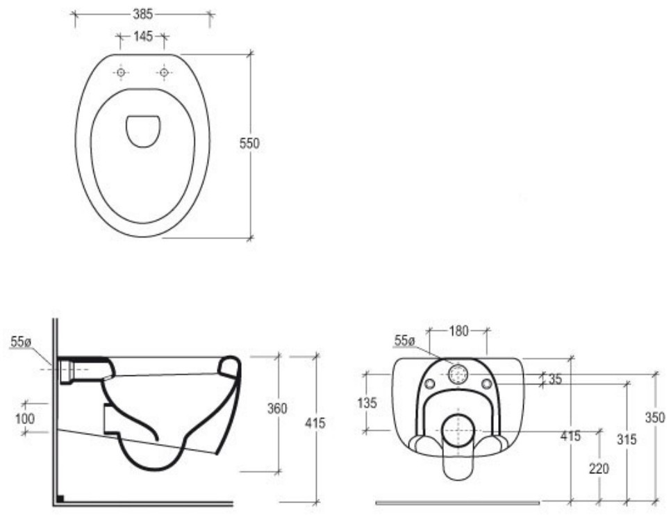 Высота чаши унитаза - 360 мм,