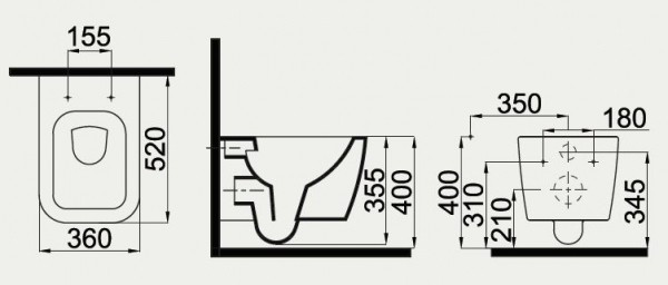 Высота чаши унитаза - 355 мм,