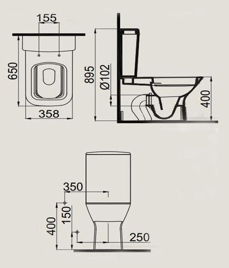 Высота чаши унитаза - 400 мм,