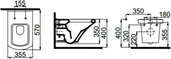 Высота чаши унитаза - 350 мм,
