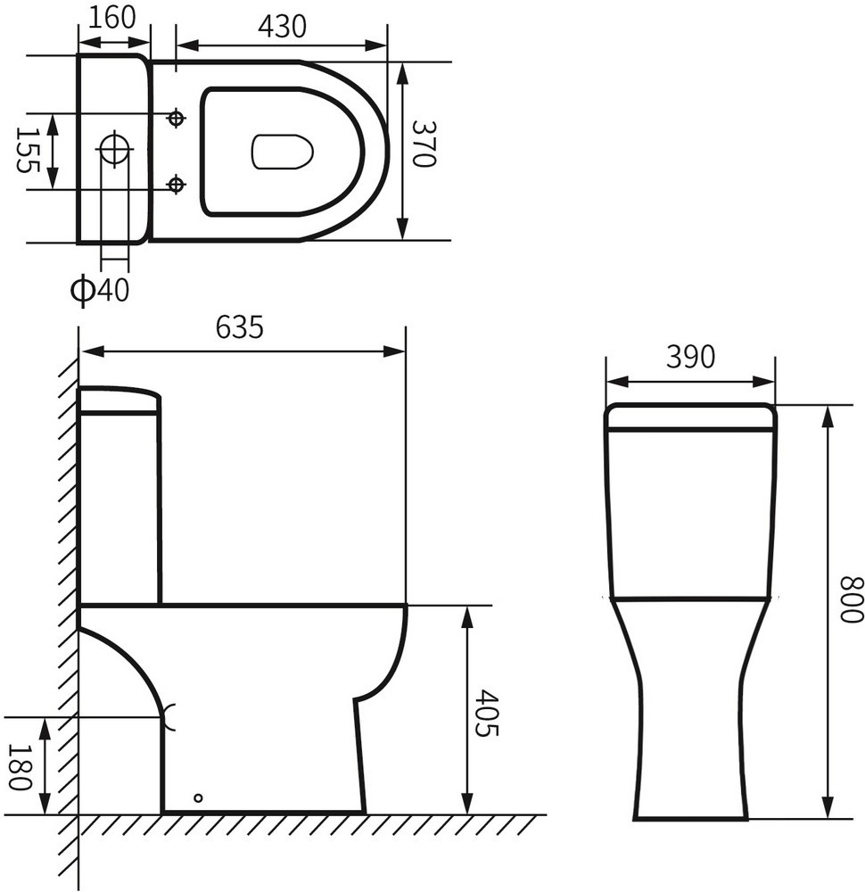 Высота чаши унитаза - 405 мм,