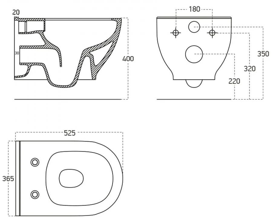 Высота чаши унитаза - 350 мм,