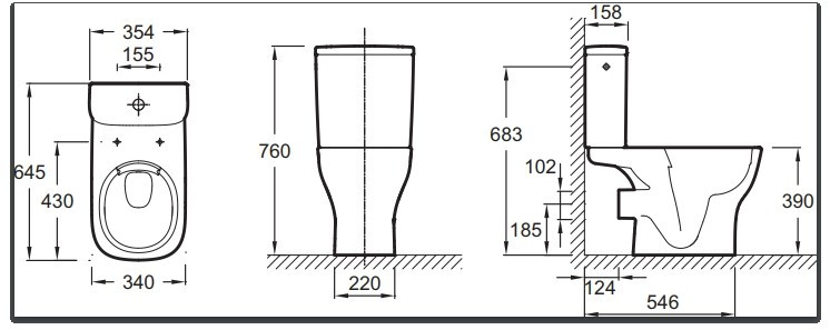 Высота чаши унитаза - 390 мм,