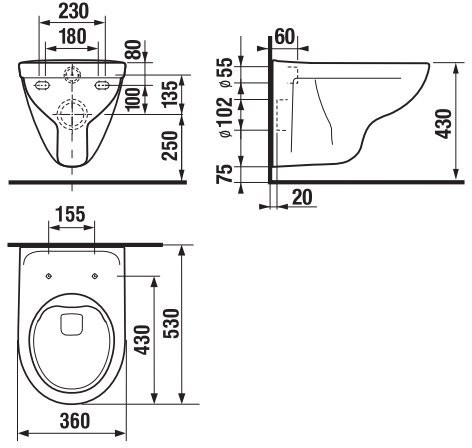 Высота чаши унитаза - 355 мм,