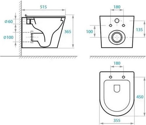 Высота чаши унитаза - 365 мм,