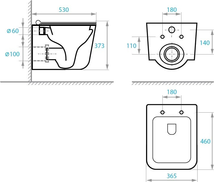 Высота чаши унитаза - 373 мм,