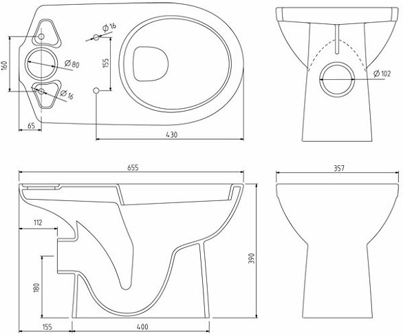 Высота чаши унитаза - 390 мм,