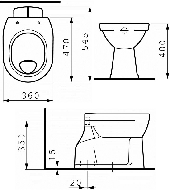 Высота чаши унитаза - 400 мм,