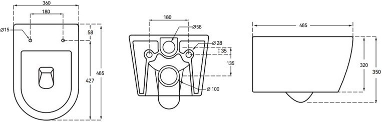 Высота чаши унитаза - 350 мм,