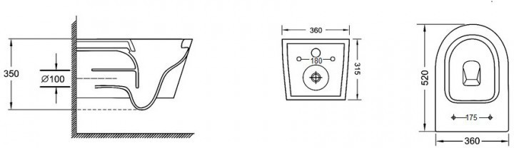 Высота чаши унитаза - 350 мм,