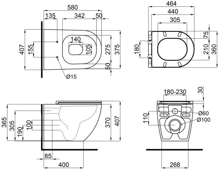 Высота чаши унитаза - 370 мм,