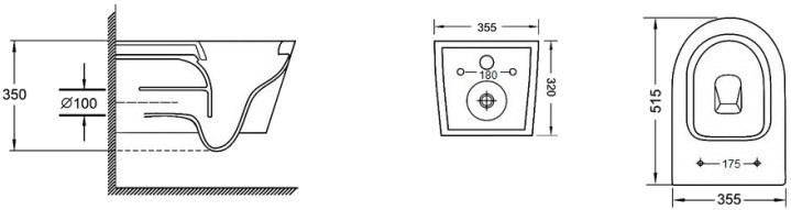 Высота чаши унитаза - 350 мм,