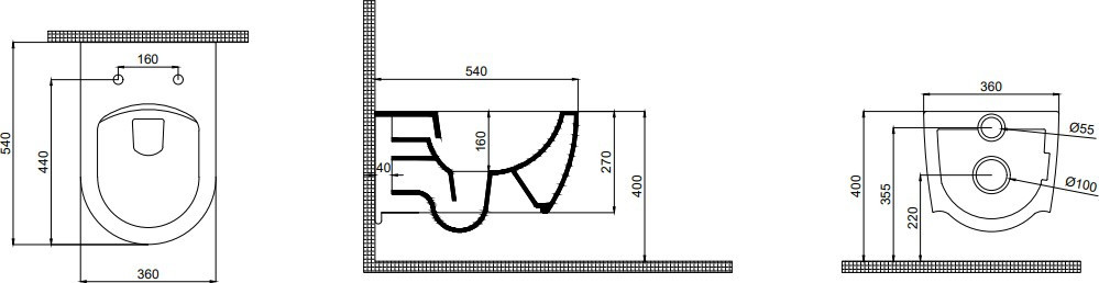 Высота чаши унитаза - 320 мм,