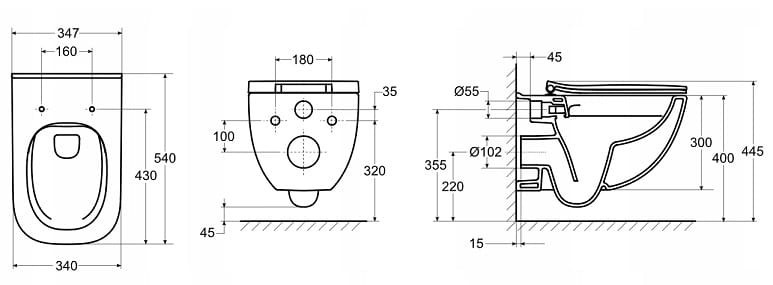 Высота чаши унитаза - 355 мм,
